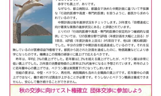 今後も資格手当、看護師等処遇改善事業の制度を活用した給与改善など交渉が続きます。