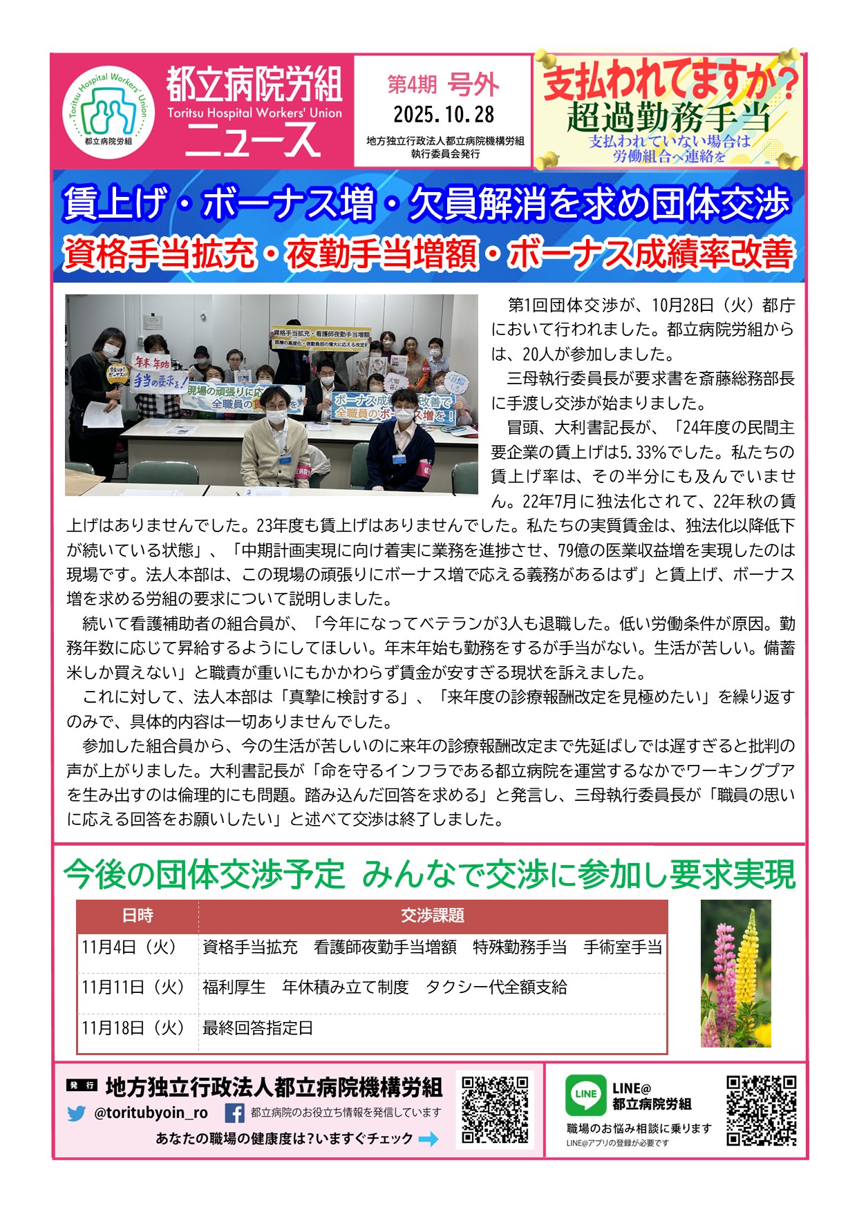 【号外】賃上げ・ボーナス増・欠員解消を求め団体交渉