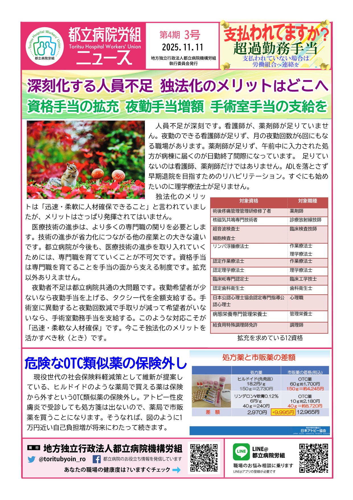 資格手当の拡充 夜勤手当増額 手術室手当の支給を