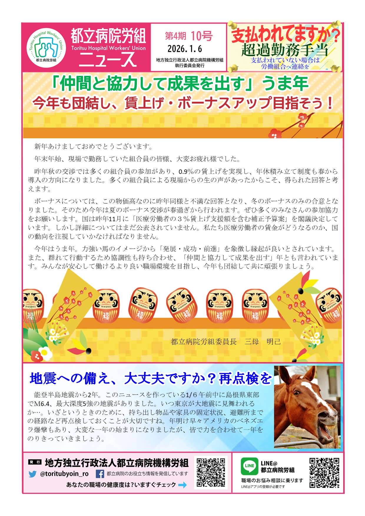 年末年始、現場で勤務していた組合員の皆様、大変お疲れ様でした。