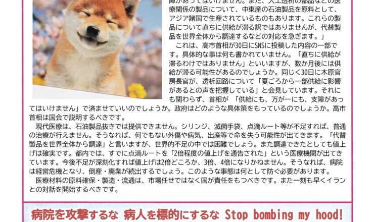 「国民の皆様の命に直結するものとして、輸血パックなどの医薬品、透析回路や注射器などの医療機器、医療用手袋やエプロンなどの医療物資の供給にも、万が一...