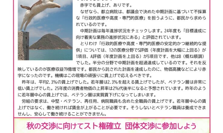 中期計画達成に向け着実に業務を進捗させたのは現場です 賃上げ交渉が始まります。 10月28日(火)から4週にわたって団体交渉を行います。24年度都立...
