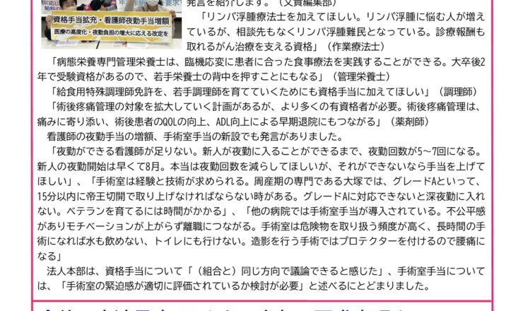 【号外】資格手当拡充・看護師夜勤手当の増額を