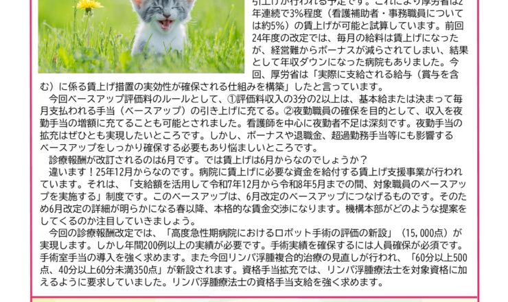 2年連続の賃上げが盛り込まれています! どこに?26年度診療報酬改定にです。26年度6月の改定では、医療労働者の賃上げ分として1.70%の引上げ...